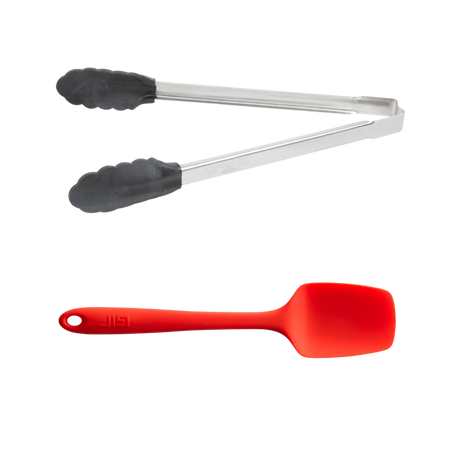 Essential Utensil Bundle: High Heat GIR Silicone Spoonula + Vollrath Stainless Steel Tongs